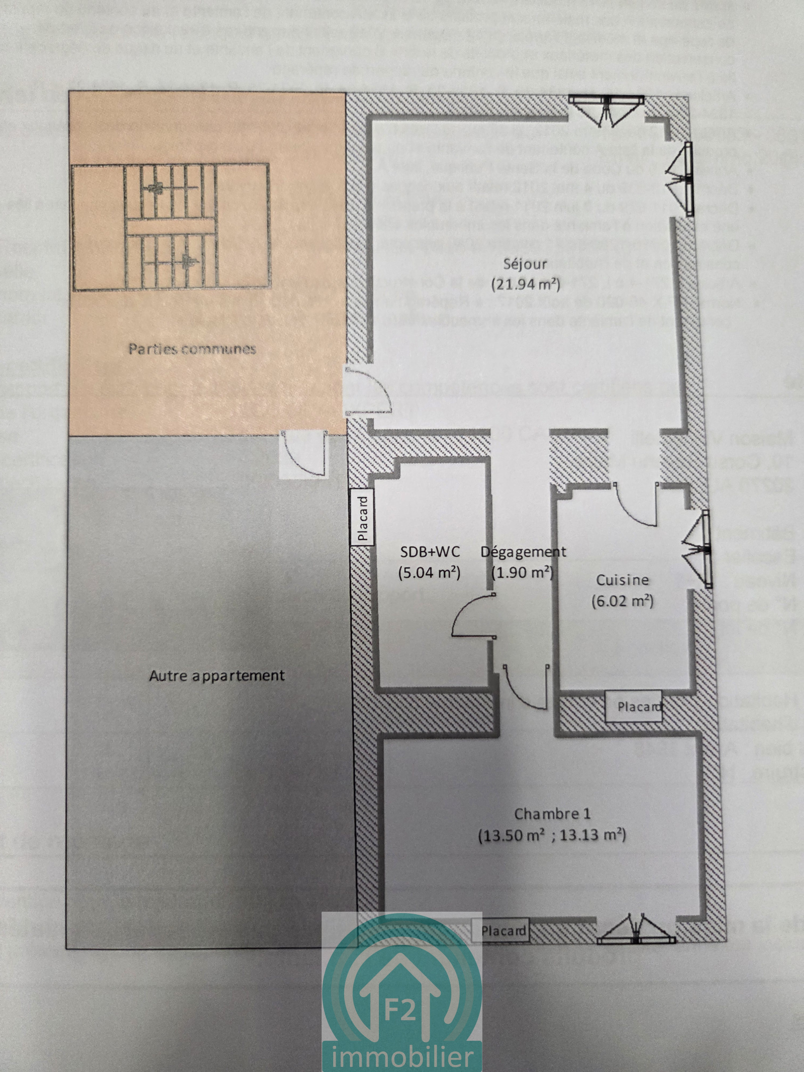 Appartement 2 pièce(s) 1 chambre(s) 49 m²